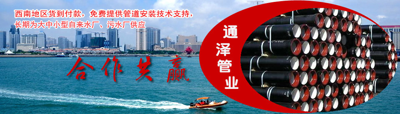 重慶(qing)(qing)通澤管(guan)業(ye)(ye)有(you)限(xian)公司主要(yao)經銷(xiao)各種規格球(qiu)墨(mo)(mo)(mo)管(guan)、球(qiu)墨(mo)(mo)(mo)鑄(zhu)(zhu)(zhu)(zhu)鐵(tie)(tie)管(guan)、濟鋼(gang)球(qiu)墨(mo)(mo)(mo)鑄(zhu)(zhu)(zhu)(zhu)鐵(tie)(tie)管(guan)、新興球(qiu)墨(mo)(mo)(mo)鑄(zhu)(zhu)(zhu)(zhu)鐵(tie)(tie)管(guan)、球(qiu)墨(mo)(mo)(mo)鑄(zhu)(zhu)(zhu)(zhu)鐵(tie)(tie)管(guan)件(jian)等產品(pin)。我公司產品(pin)質量優質,始(shi)終堅持和貫徹“質量是(shi)企業(ye)(ye)生存之本(ben),為(wei)用戶提供滿(man)足(zu)的(de)(de)產品(pin)和服務是(shi)我們永恒的(de)(de)追求”的(de)(de)質量方針(zhen)。重慶(qing)(qing)通澤管(guan)業(ye)(ye)有(you)限(xian)公司經銷(xiao)的(de)(de)球(qiu)墨(mo)(mo)(mo)管(guan)、球(qiu)墨(mo)(mo)(mo)鑄(zhu)(zhu)(zhu)(zhu)鐵(tie)(tie)管(guan)、重慶(qing)(qing)球(qiu)墨(mo)(mo)(mo)鑄(zhu)(zhu)(zhu)(zhu)鐵(tie)(tie)管(guan)、濟鋼(gang)球(qiu)墨(mo)(mo)(mo)鑄(zhu)(zhu)(zhu)(zhu)鐵(tie)(tie)管(guan)、新興球(qiu)墨(mo)(mo)(mo)鑄(zhu)(zhu)(zhu)(zhu)鐵(tie)(tie)管(guan)、球(qiu)墨(mo)(mo)(mo)鑄(zhu)(zhu)(zhu)(zhu)鐵(tie)(tie)管(guan)件(jian),規格是(shi)DN80-DN1600 ...<查看詳情>